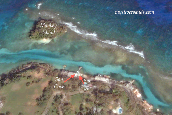 Below is a Google View of San San Villas, San Cove and San Bar in relation to Monkey Island.