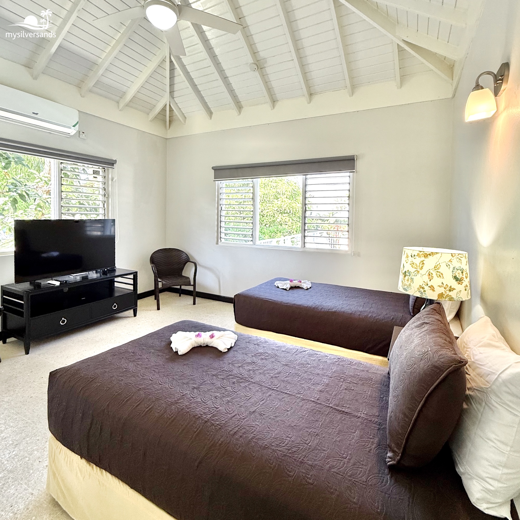 Ayasso Villa is a vacation villa with private swimming pool surrounded by a spacious deck with an attached gazebo. There are 4 bedrooms each with bathroom en suite. Ayasso vacation villa is less than an 8 minute walk to the gorgeous, uncrowded white sand beach, located in the gated community of Silver Sands Jamaica.