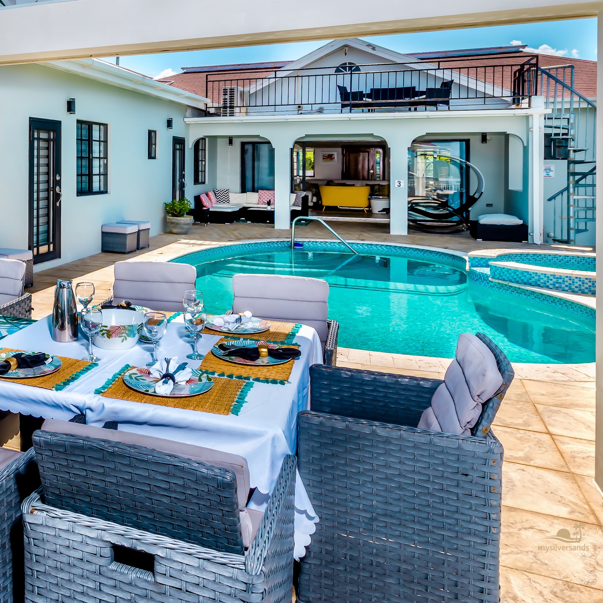 • Private pool plus jetted mini pool.